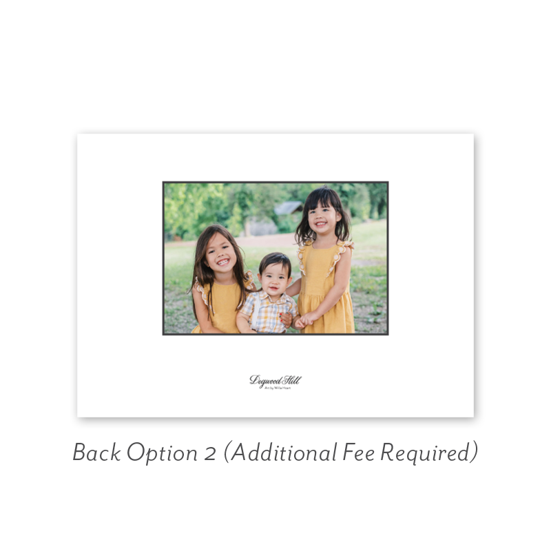 Want to add up to 4 photos on the back or inside of your card? Click here to add the fee to your cart.
