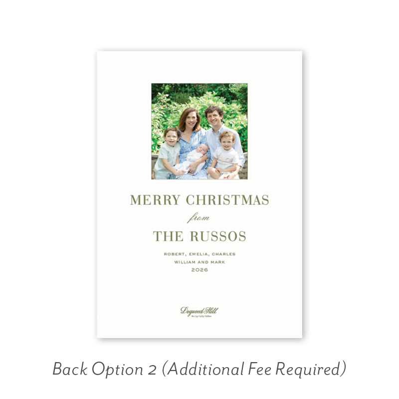 Select your order quantity from the dropdown menu below and check your total. Then click the Customize and Add to Cart button to create your card and add it to your cart.Want to add up to 4 photos on the back or inside of your card? Click here to add the fee to your cart.