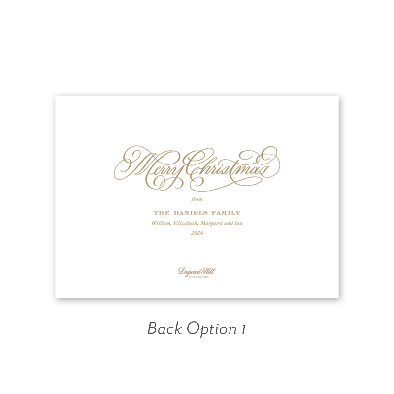 Select your order quantity from the dropdown menu below and check your total. Then click the Customize and Add to Cart button to create your card and add it to your cart.Want to add up to 4 photos on the back or inside of your card? Click here to add the fee to your cart.