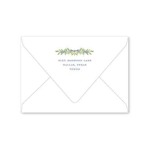 Select your order quantity from the dropbox menu below and check your total. Enter the personalization text for your notecard in the “Note” box below. Click Add to Cart. You will receive a proof notification via email and text message within 3 to 5 business days.Each card comes with one free BLANK Eggshell White envelope.