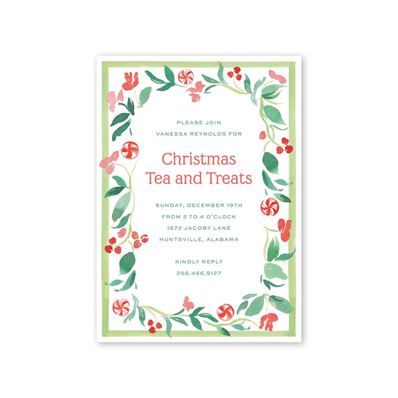 Christmas Candy Canes Floral Invitation