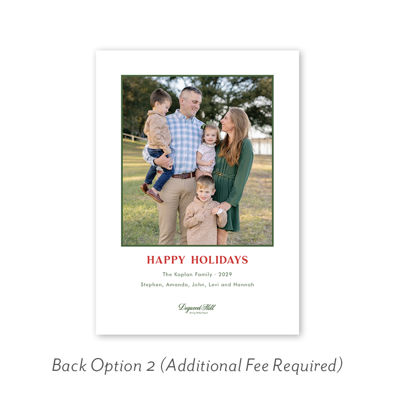 Select your order quantity from the dropdown menu below and check your total. Then click the Customize and Add to Cart button to create your card and add it to your cart.Want to add up to 4 photos on the back or inside of your card? Click here to add the fee to your cart.