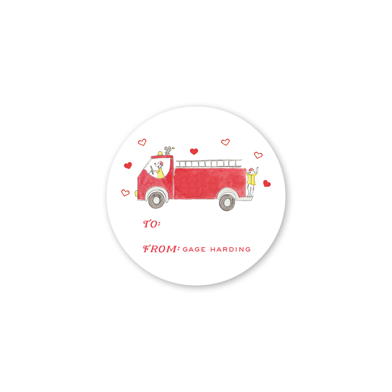Animal Valentine Parade Firetruck Stickers