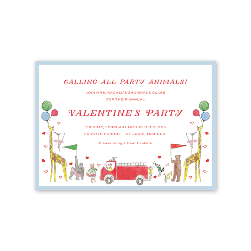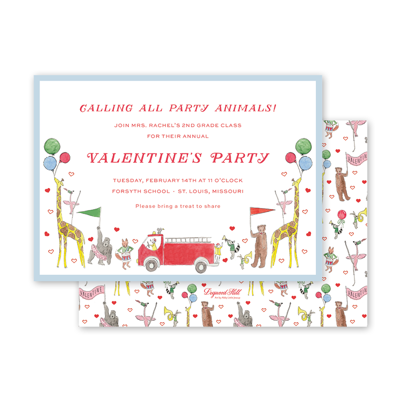 Animal Valentine Parade Landscape Invitation