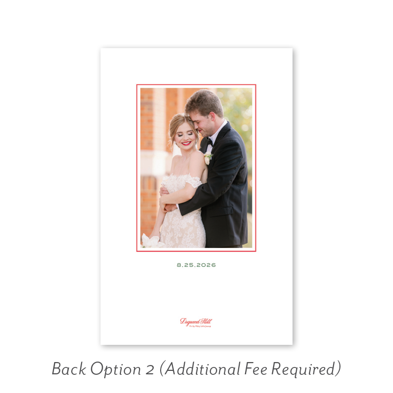 Select your order quantity from the dropdown menu below and check your total. Then click the Customize and Add to Cart button to create your card and add it to your cart.Want to add up to 4 photos on the back or inside of your card? Click here to add the fee to your cart.