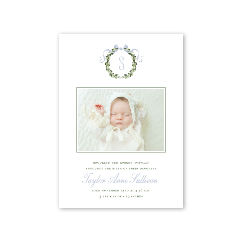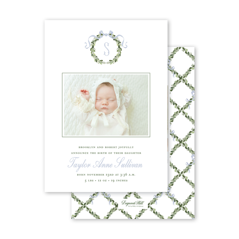 Hospitable Holiday Magnolia Wreath Birth Announcement