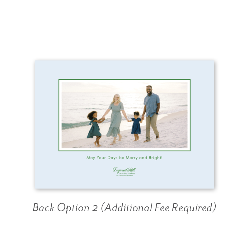 Select your order quantity from the dropdown menu below and check your total. Then click the Customize and Add to Cart button to create your card and add it to your cart.Want to add up to 4 photos on the back or inside of your card? Click here to add the fee to your cart.