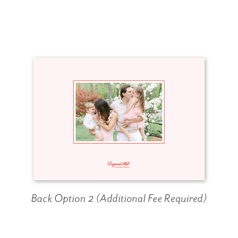 Select your order quantity from the dropdown menu below and check your total. Then click the Customize and Add to Cart button to create your card and add it to your cart.Want to add up to 4 photos on the back or inside of your card? Click here to add the fee to your cart.