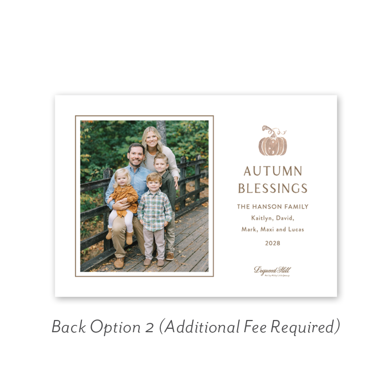 Select your order quantity from the dropdown menu below and check your total. Then click the Customize and Add to Cart button to create your card and add it to your cart.Want to add up to 4 photos on the back or inside of your card? Click here to add the fee to your cart.