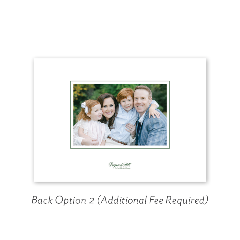 Select your order quantity from the dropdown menu below and check your total. Then click the Customize and Add to Cart button to create your card and add it to your cart.Want to add up to 4 photos on the back or inside of your card? Click here to add the fee to your cart.