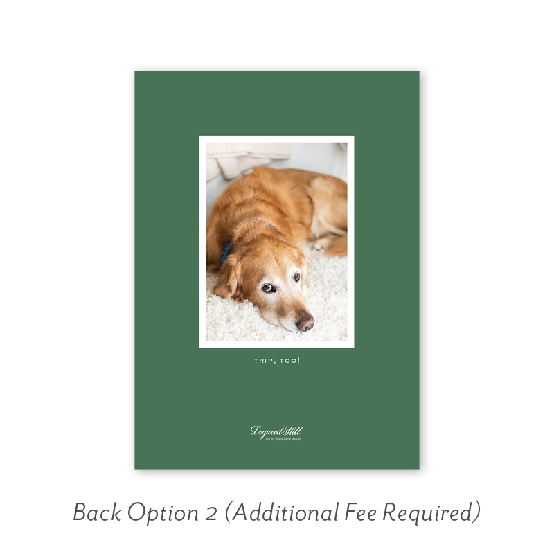 Select your order quantity from the dropdown menu below and check your total. Then click the Customize and Add to Cart button to create your card and add it to your cart.Want to add up to 4 photos on the back or inside of your card? Click here to add the fee to your cart.