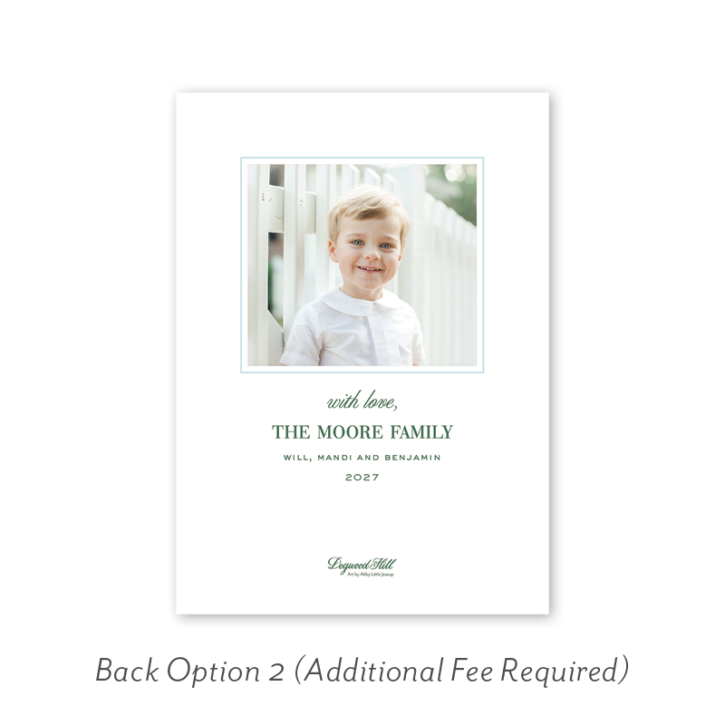 Select your order quantity from the dropdown menu below and check your total. Then click the Customize and Add to Cart button to create your card and add it to your cart.Want to add up to 4 photos on the back or inside of your card? Click here to add the fee to your cart.