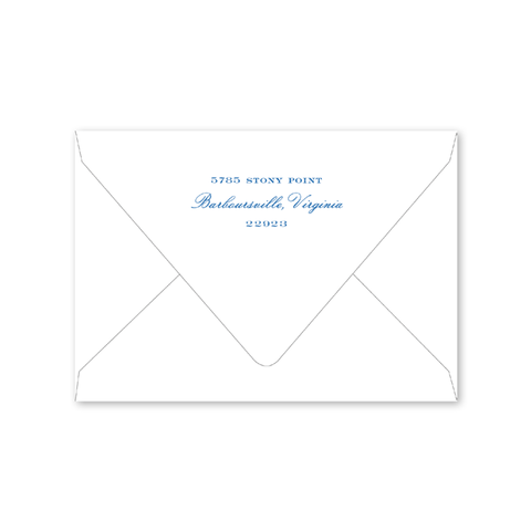 Select your order quantity from the dropbox menu below and check your total. Enter the personalization text for your notecard in the “Note” box below. Click Add to Cart. You will receive a proof notification via email and text message within 3 to 5 business days.Each card comes with one free BLANK Eggshell White envelope.