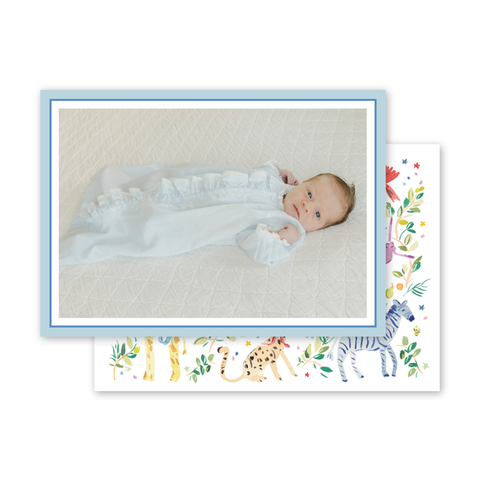 Animal Fête Blue Border Landscape Birth Announcement Recipient Address Printing