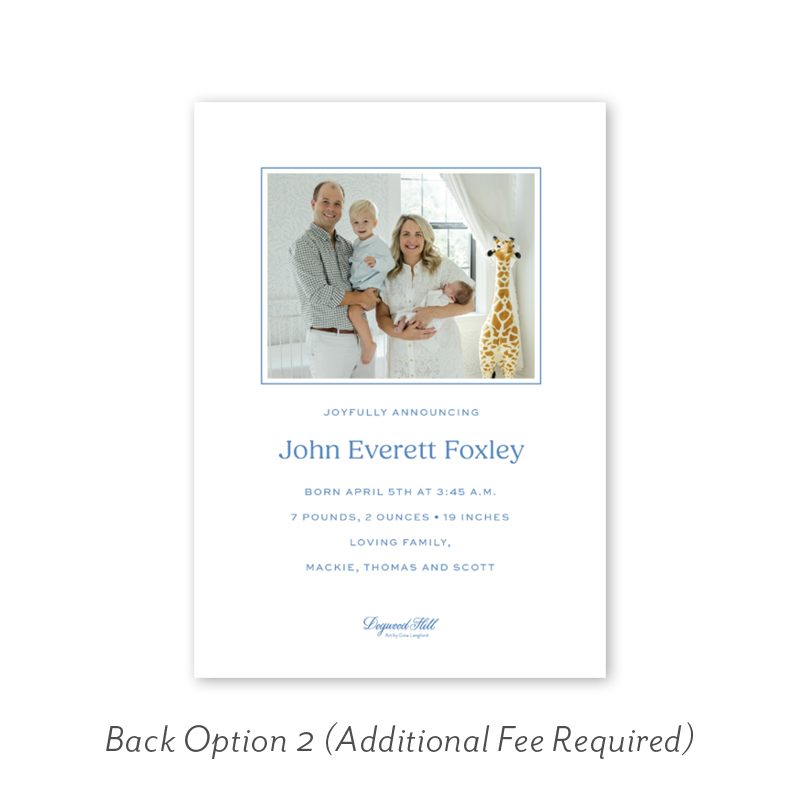 Want to add up to 4 photos on the back or inside of your card? Click here to add the fee to your cart.