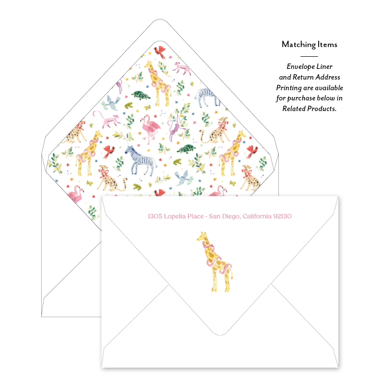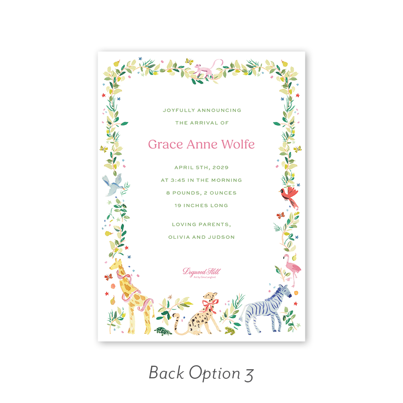 Animal Fête Pink Border Birth Announcement