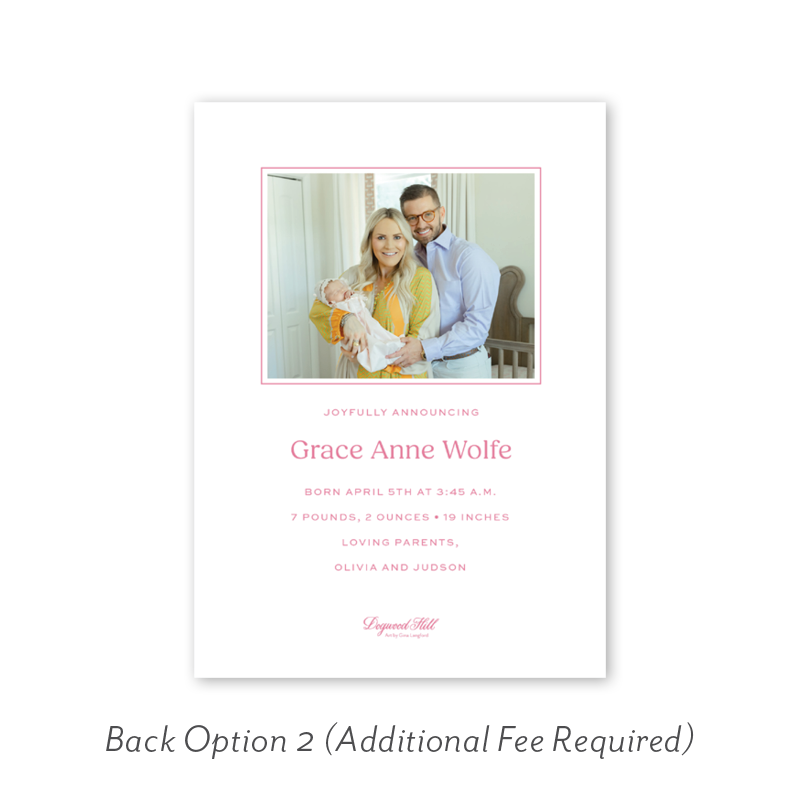 Want to add up to 4 photos on the back or inside of your card? Click here to add the fee to your cart.