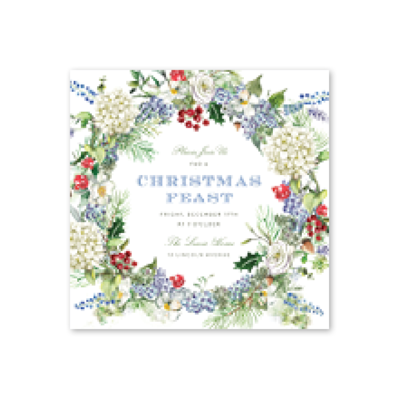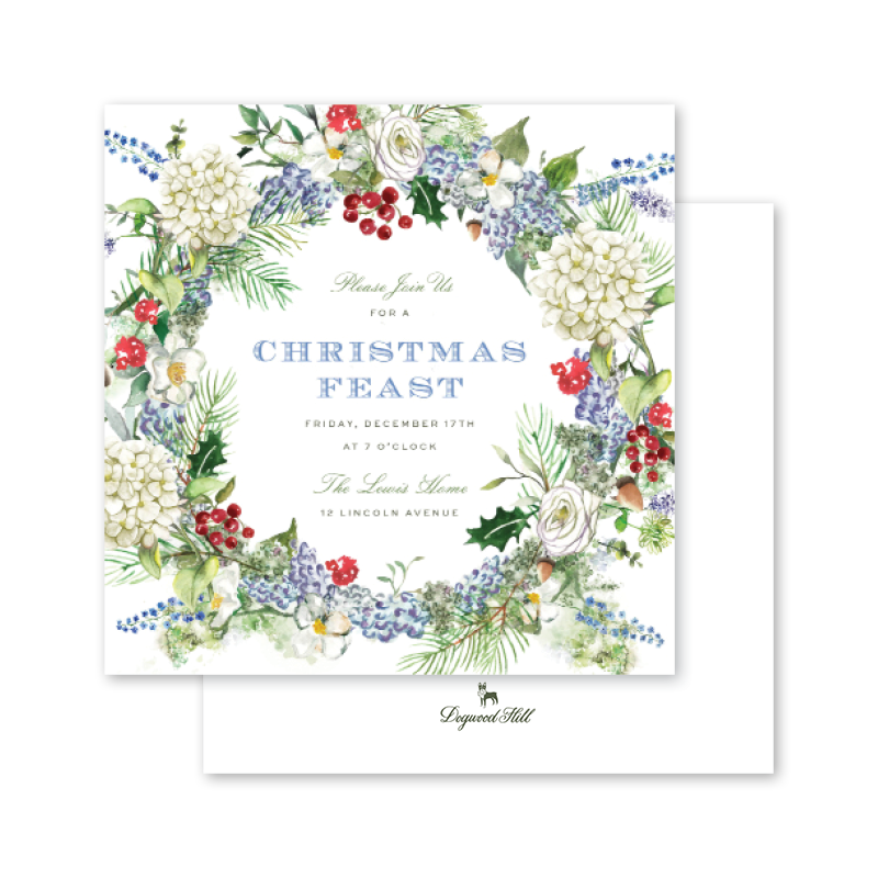 Blue Hydrangea Christmas Square Invitation
