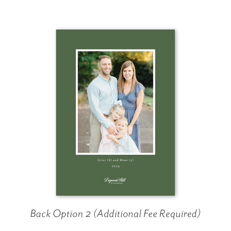 Select your order quantity from the dropdown menu below and check your total. Then click the Customize and Add to Cart button to create your card and add it to your cart.Want to add up to 4 photos on the back or inside of your card? Click here to add the fee to your cart.