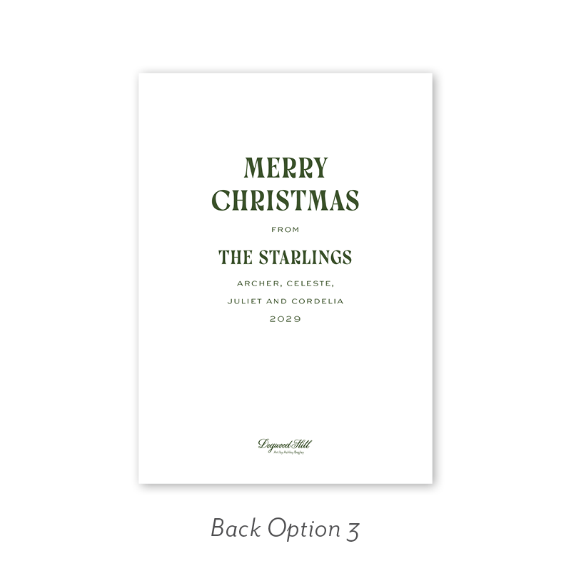 Select your order quantity from the dropdown menu below and check your total. Then click the Customize and Add to Cart button to create your card and add it to your cart.Want to add up to 4 photos on the back or inside of your card? Click here to add the fee to your cart.
