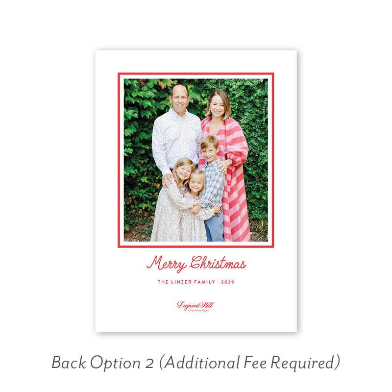 Select your order quantity from the dropdown menu below and check your total. Then click the Customize and Add to Cart button to create your card and add it to your cart.Want to add up to 4 photos on the back or inside of your card? Click here to add the fee to your cart.