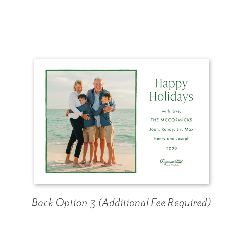 Select your order quantity from the dropdown menu below and check your total. Then click the Customize and Add to Cart button to create your card and add it to your cart.Want to add up to 4 photos on the back or inside of your card? Click here to add the fee to your cart.