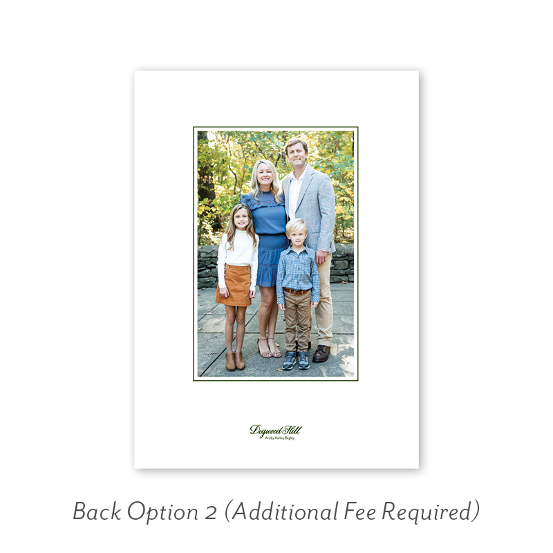 Select your order quantity from the dropdown menu below and check your total. Then click the Customize and Add to Cart button to create your card and add it to your cart.Want to add up to 4 photos on the back or inside of your card? Click here to add the fee to your cart.