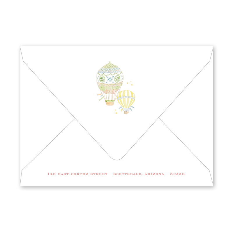 Balloon Festival Pink Border Birth Announcement Envelopes