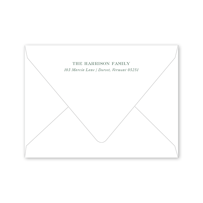 Enter your order quantity and check your total. Please enter your address EXACTLY like you want it printed on your envelope in the "Note" box below. Click Add to Cart. You will not receive a proof during the holidays (September 15 – December 31), unless your accompanying card requires a proof. If you do not include your address in the "Note" box or email it to Customer Service within 24 hours of placing your order, we will use your shipping address as the printed return address on your envelope.