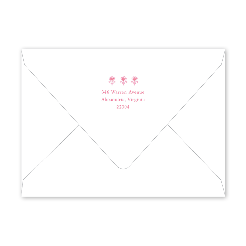 Berry Blooms Block Print Pink Birth Announcement Envelopes