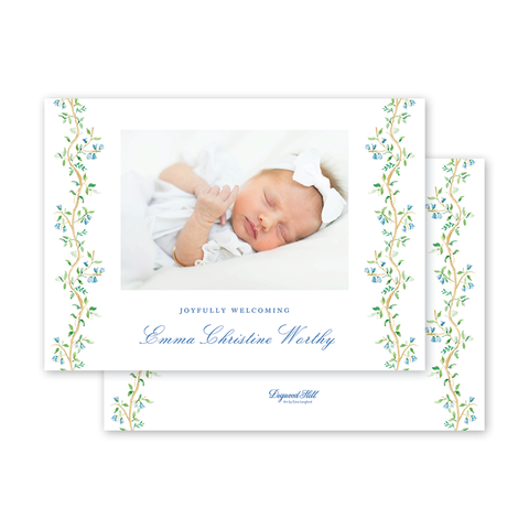 Bespoke Chinoiserie Landscape Birth Announcement Blue Liner