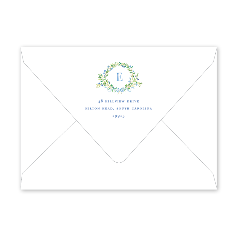 Bespoke Chinoiserie Wreath Landscape Birth Announcement Envelopes