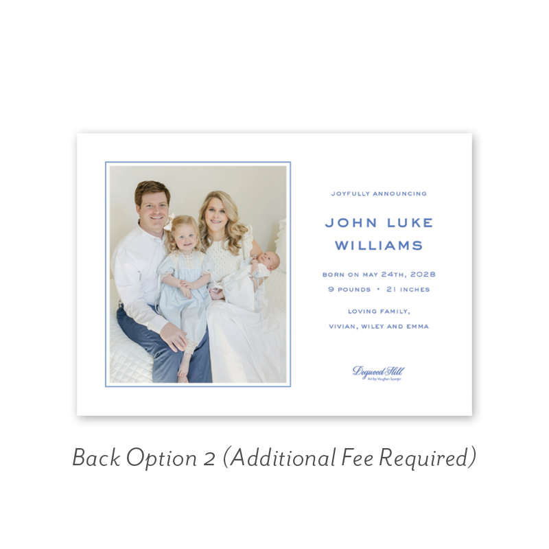 Select your order quantity from the dropdown menu below and check your total. Then click the Customize and Add to Cart button to create your card and add it to your cart.Want to add up to 4 photos on the back or inside of your card? Click here to add the fee to your cart.