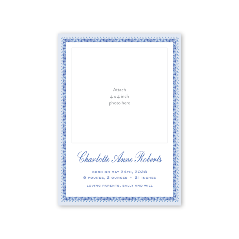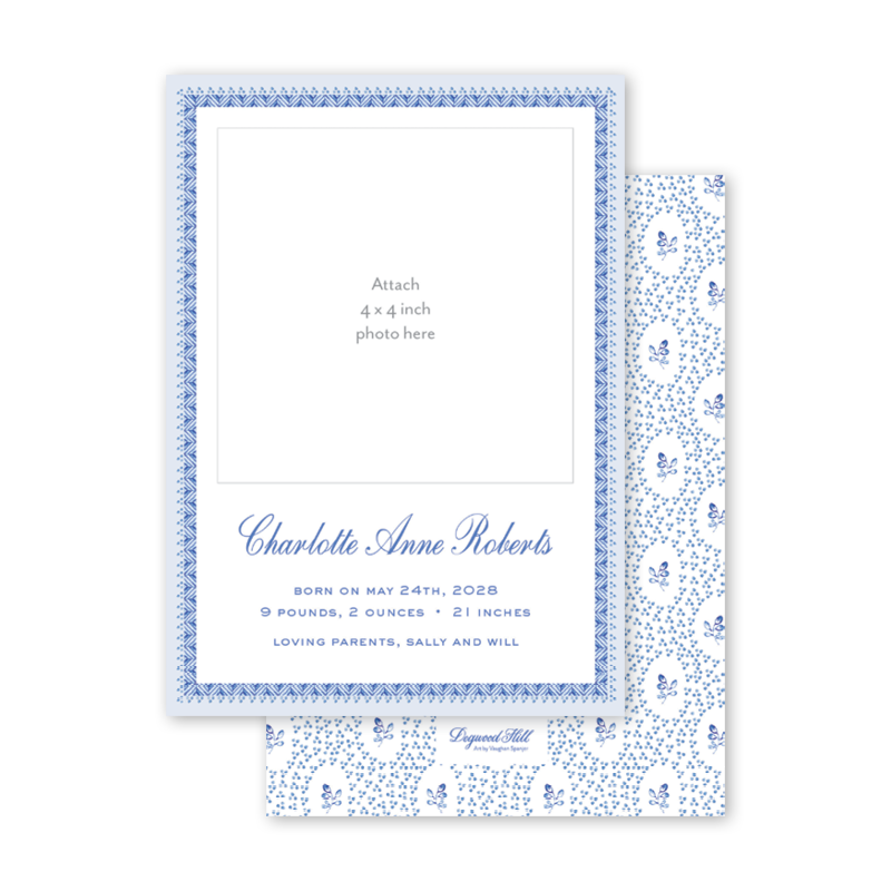 Blue Botanicals Script Photo Mount Birth Announcement