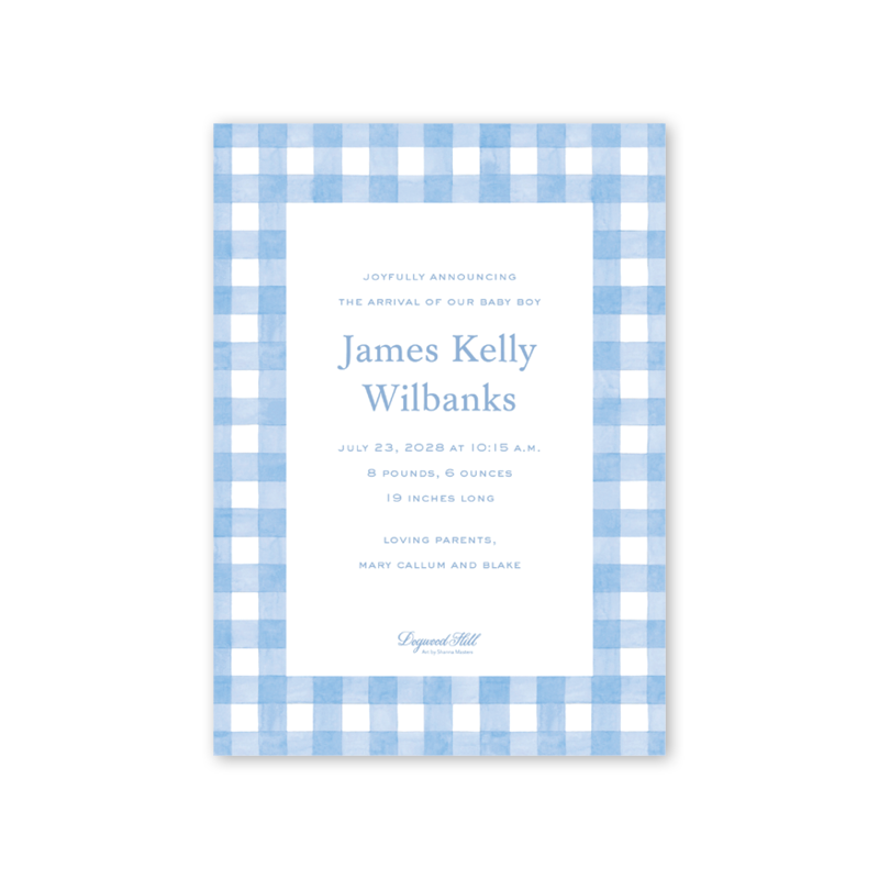 Cavalier Garden Gingham Photo Mount Birth Announcement