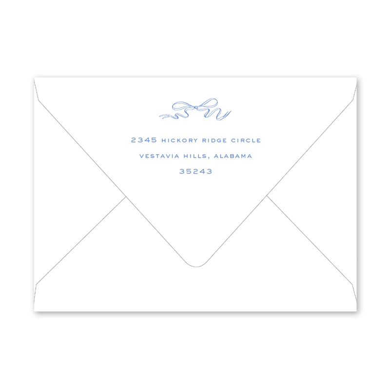 Enter your order quantity and check your total. Please enter your address EXACTLY like you want it printed on your envelope in the "Note" box below. Click Add to Cart. You will not receive a proof during the holidays (September 15 – December 31), unless your accompanying card requires a proof. If you do not include your address in the "Note" box or email it to Customer Service within 24 hours of placing your order, we will use your shipping address as the printed return address on your envelope.