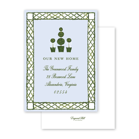 Boxwood Lattice Blue Moving Announcement Envelopes