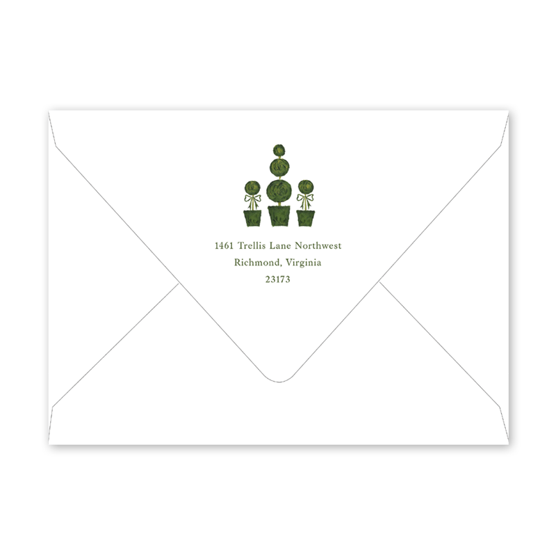Enter your order quantity and check your total. Please enter your address EXACTLY like you want it printed on your envelope in the "Note" box below. Click Add to Cart. You will not receive a proof during the holidays (September 15 – December 31), unless your accompanying card requires a proof. If you do not include your address in the "Note" box or email it to Customer Service within 24 hours of placing your order, we will use your shipping address as the printed return address on your envelope.