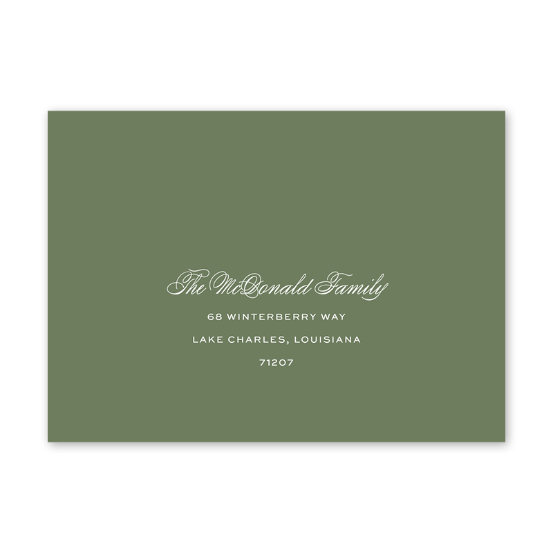 Enter your order quantity and check your total. Please enter your address EXACTLY like you want it printed on your envelope in the "Note" box below. Click Add to Cart. You will not receive a proof during the holidays (September 15 – December 31), unless your accompanying card requires a proof. If you do not include your address in the "Note" box or email it to Customer Service within 24 hours of placing your order, we will use your shipping address as the printed return address on your envelope. Enter your order quantity and check your total. Then click the Customize and Add to Cart button to enter your address and add the envelope to your cart.