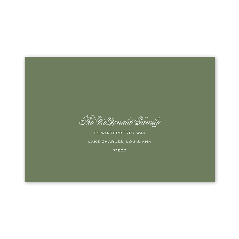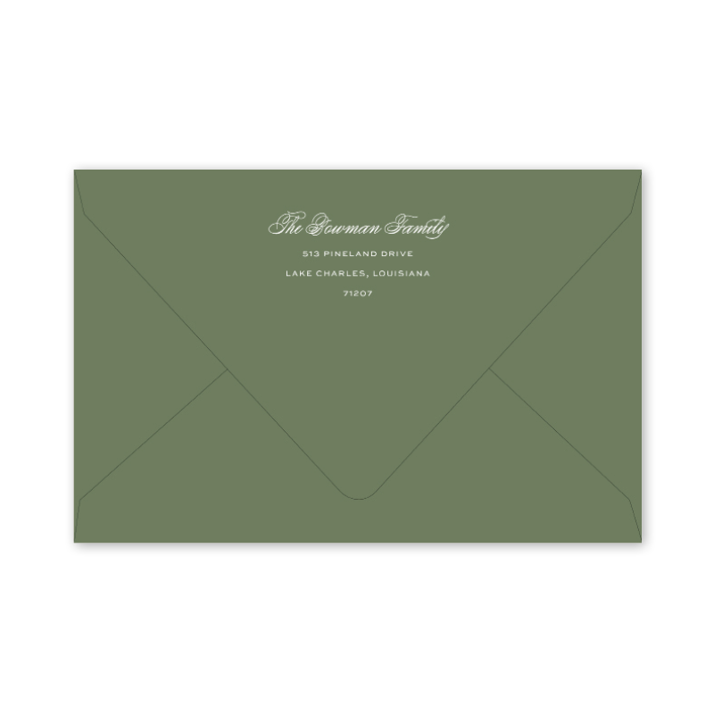 Enter your order quantity and check your total. Please enter your address EXACTLY like you want it printed on your envelope in the "Note" box below. Click Add to Cart. You will not receive a proof during the holidays (September 15 – December 31), unless your accompanying card requires a proof. If you do not include your address in the "Note" box or email it to Customer Service within 24 hours of placing your order, we will use your shipping address as the printed return address on your envelope. Enter your order quantity and check your total. Then click the Customize and Add to Cart button to enter your address and add the envelope to your cart.