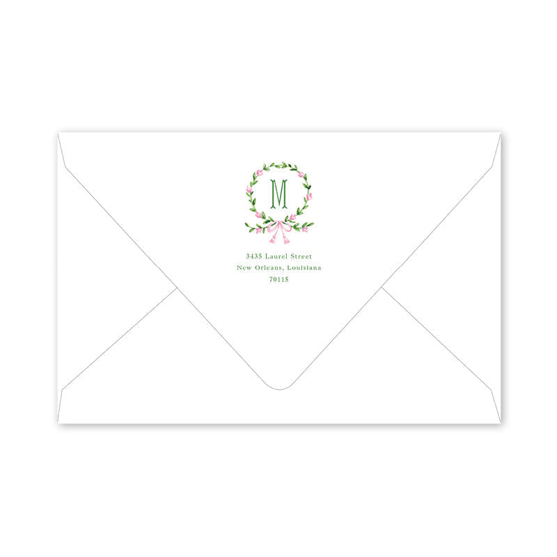 Broderie Pink Wreath Birth Announcement Envelopes