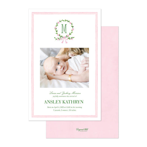 Broderie Pink Wreath Birth Announcement Solid Liner