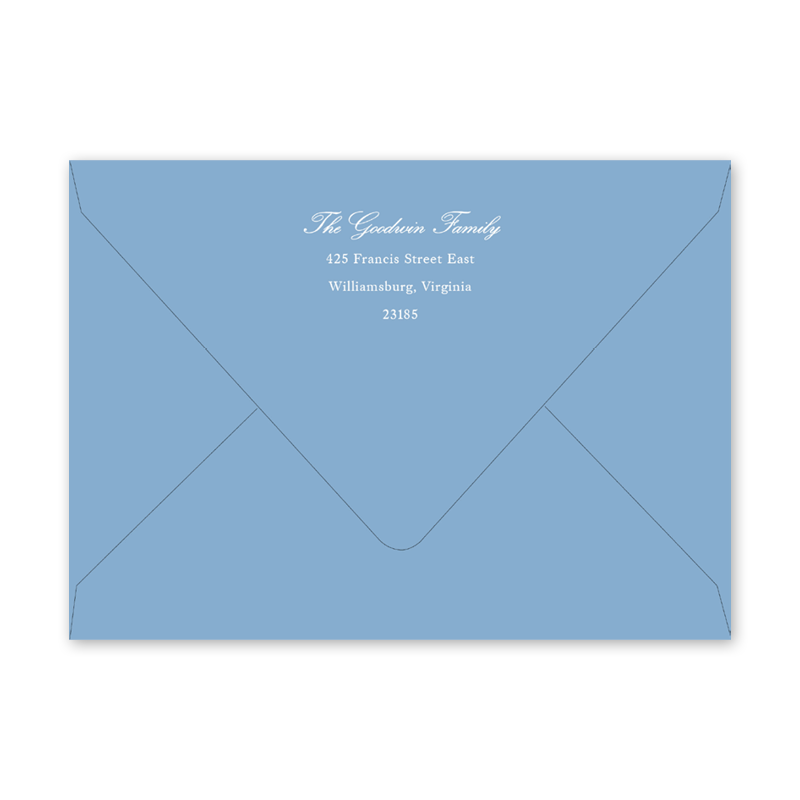 Enter your order quantity and check your total. Please enter your address EXACTLY like you want it printed on your envelope in the "Note" box below. Click Add to Cart. You will not receive a proof during the holidays (September 15 – December 31), unless your accompanying card requires a proof. If you do not include your address in the "Note" box or email it to Customer Service within 24 hours of placing your order, we will use your shipping address as the printed return address on your envelope. Enter your order quantity and check your total. Then click the Customize and Add to Cart button to enter your address and add the envelope to your cart. | /