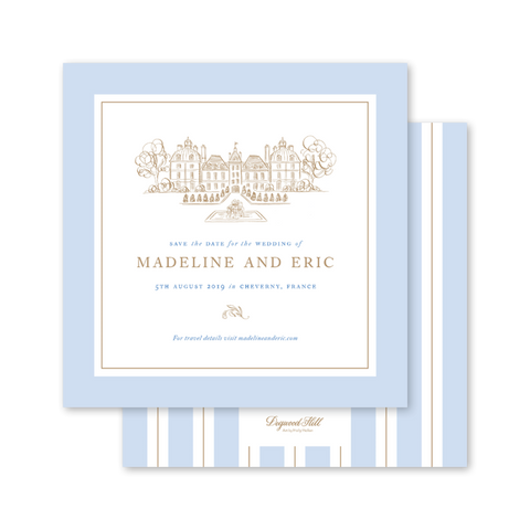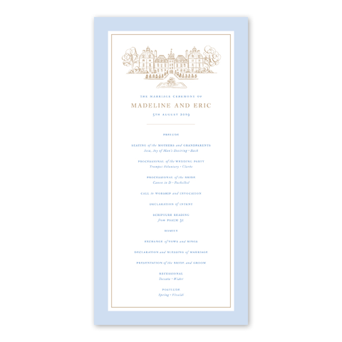 Each invitation comes with a blank inner and outer envelope and return address printing on the outer envelope flap. Envelope liner and recipient address printing for each envelope may be purchased for an additional cost on the main collection page.