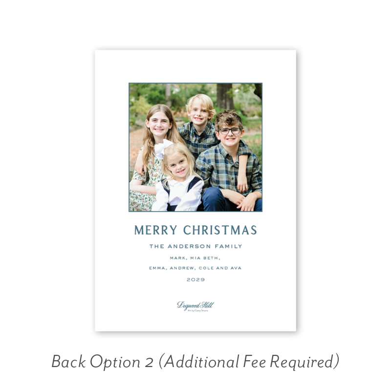 Select your order quantity from the dropdown menu below and check your total. Then click the Customize and Add to Cart button to create your card and add it to your cart.Want to add up to 4 photos on the back or inside of your card? Click here to add the fee to your cart.