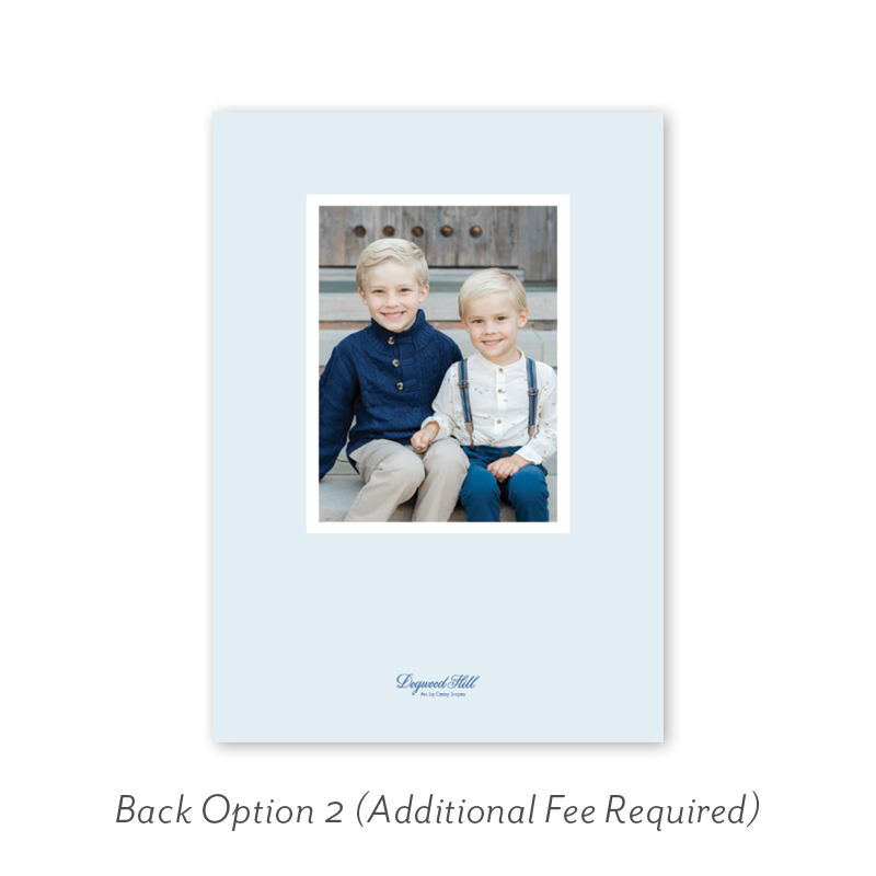 Select your order quantity from the dropdown menu below and check your total. Then click the Customize and Add to Cart button to create your card and add it to your cart.Want to add up to 4 photos on the back or inside of your card? Click here to add the fee to your cart.