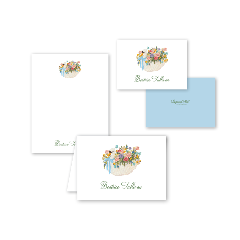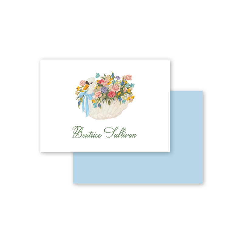 25 personalized notecards sized 3.5 x 4.875 inches folded on 120 lb Mohawk Eggshell White Paper