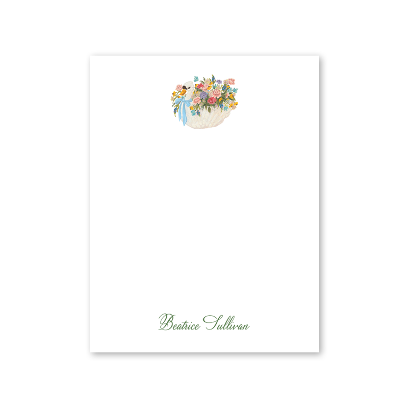 75 sheet personalized notepad sized 4.25 x 5.5 inches on 100 lb Mohawk Eggshell White Paper