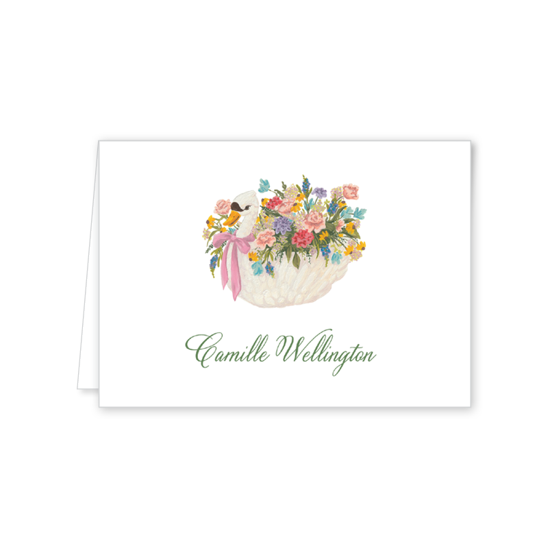 Swan Blooms Folded Notecard