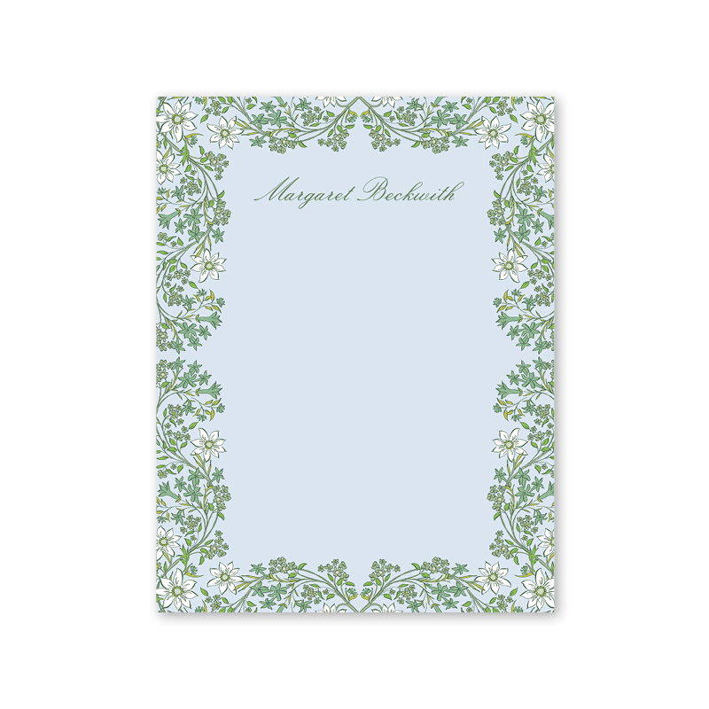 75 sheet personalized notepad on 80 lb Mohawk Eggshell White Paper